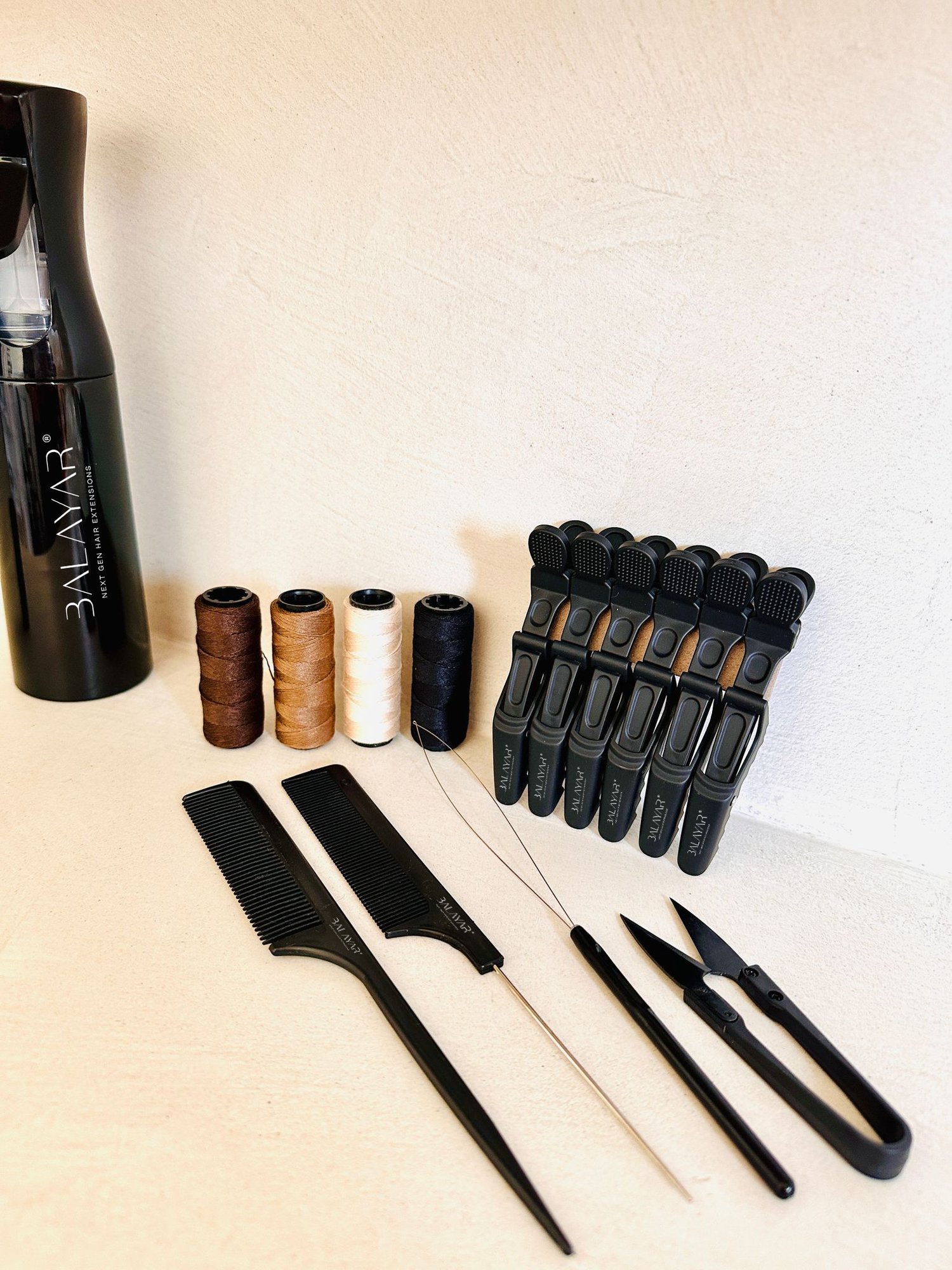 De basis van een mooie weft plaatsing? De juiste techniek én de juiste tools. Daarom biedt BALAYAR een zorgvuldig geselecteerd assortiment tools en accessoires aan die onmisbaar zijn bij het professioneel plaatsen van wefts.